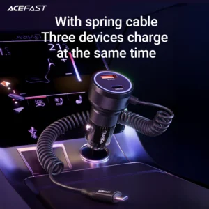 60W Car Charger with USB C Spring Cable For iPhone 16/15/14 Pro Max with RGB Light