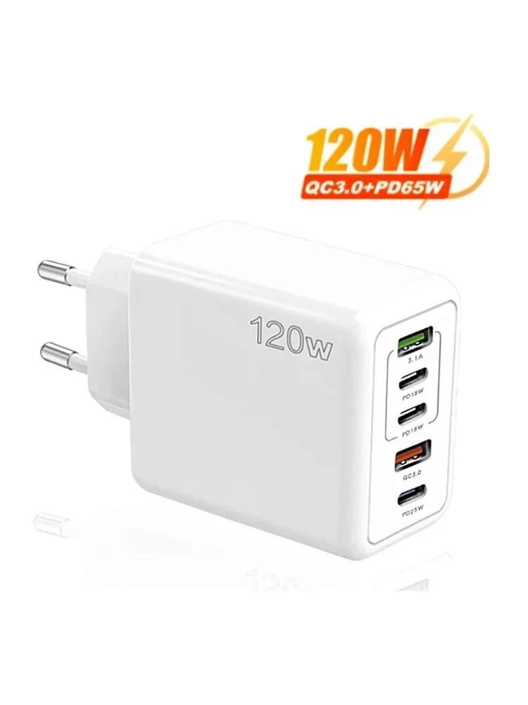 120W Multi Ports USB Quick Charger Charger Type C Fast Charging Phone Charger For iPhone 15 Samsung Xiaomi Huawei Wall Adapter