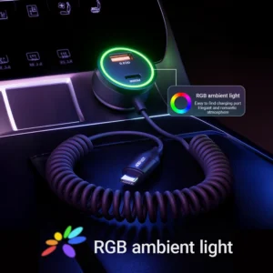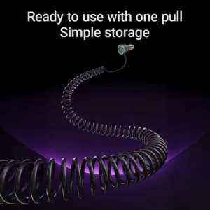 Built-in USB-C Spring Cable: The coiled design ensures no tangled cords and eliminates the need for multiple cables. It extends to the desired length, maintaining a clean, tidy dashboard without clutter.