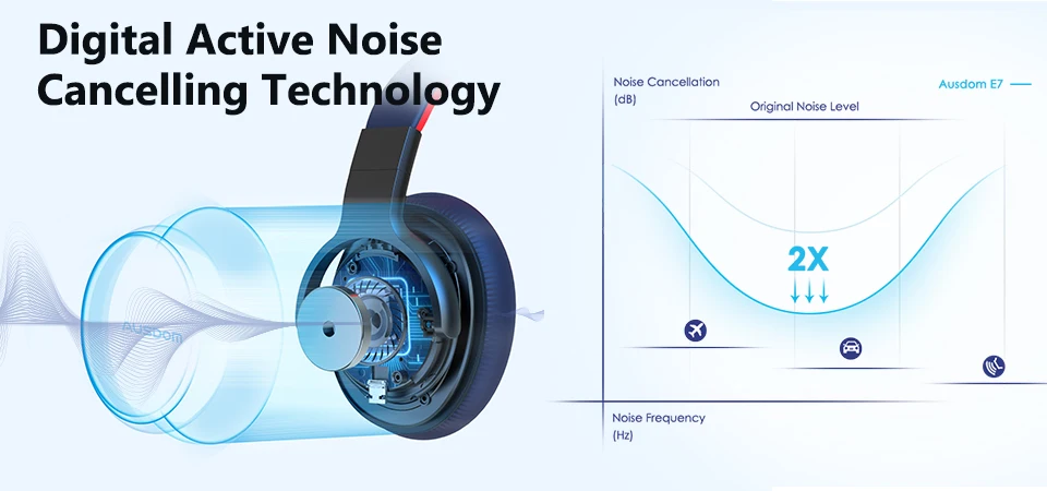 AUSDOM E7 Bluetooth Noise Cancelling 50H Headphone