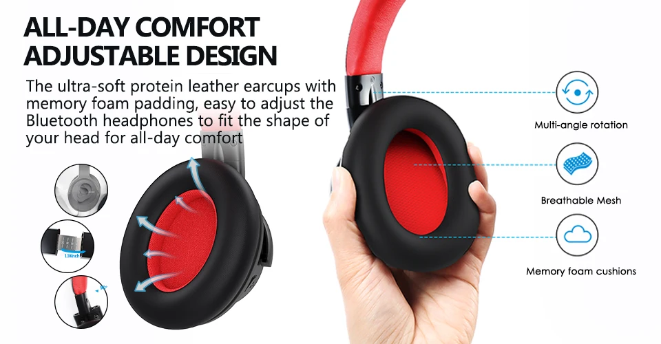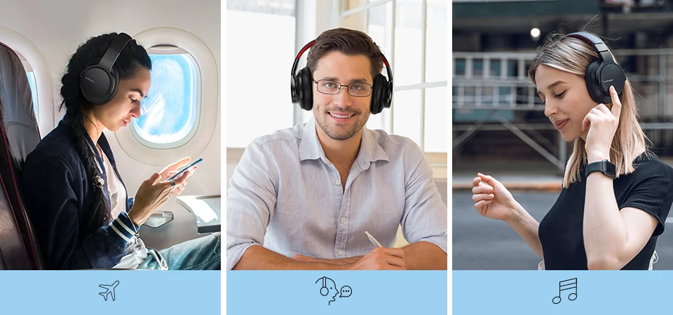 Hi-Fi Stereo Sound,Wireless Over Ear ANC Headphones with Mic