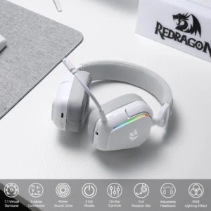 Reliable RGB Headset: The sturdy construction of Redragon wireless headphones ensures long-lasting durability, making it the perfect choice for intense gaming sessions. Take your gaming vibe to the next level with the dynamic RGB lighting.