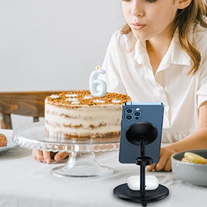Built in with dedicated magnets, the wireless charging spots provide precise mag safe alignment for your electronic devices. Wireless solid magnetic connection ensures the convenience and security of charging and holding your devices in any orientation portrait or landscape.