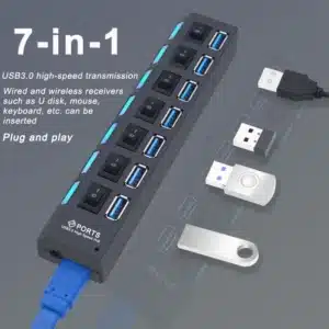 Get rid of the worry of too crowded USB port. The appearance design of this USB 4/7 PORT HUB is very beautiful. The independent USB sockets are separated from each other, which avoids the squeezing of some large USB devices together, which is practical and convenient.